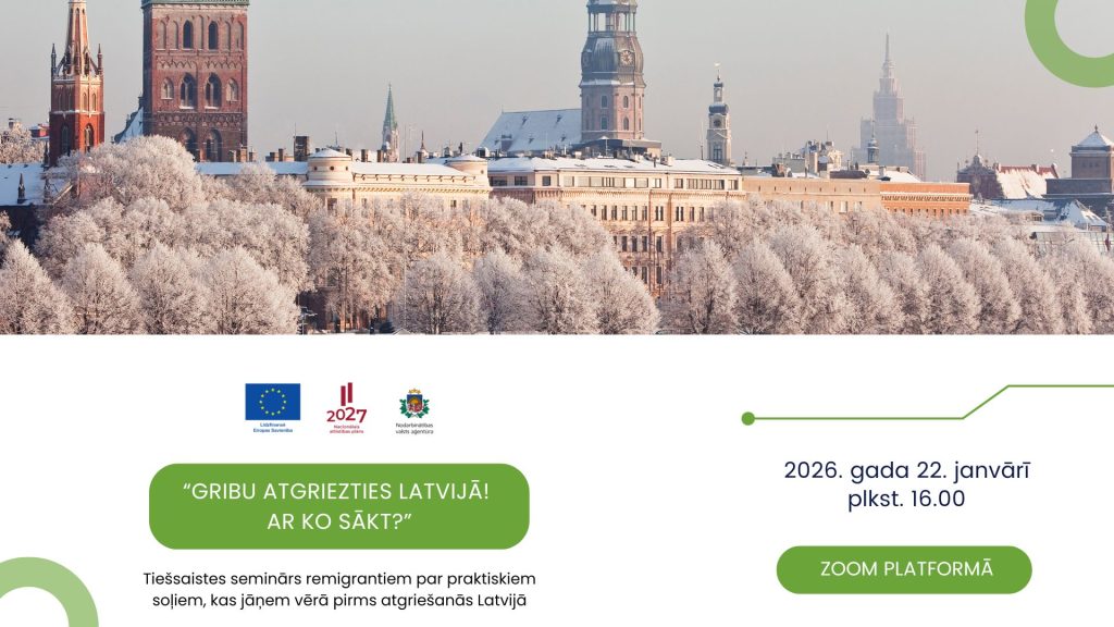 Nodarbinātības valsts aģentūras (NVA) Eiropas nodarbinātības dienestu tīkla (EURES) darba mobilitātes konsultanti arī šogad, sākot ar janvāri, Zoom platformā rīkos tiešsaistes seminārus “Gribu atgriezties Latvijā! Ar ko sākt?”. Tā ir iespēja Latvijas valsts piederīgajiem, kuri dzīvo ārvalstīs, bet vēlas atgriezties Latvijā, saņemt detalizētāku informāciju par situāciju darba tirgū un nodarbinātības iespējām Latvijā, par atbalstu un