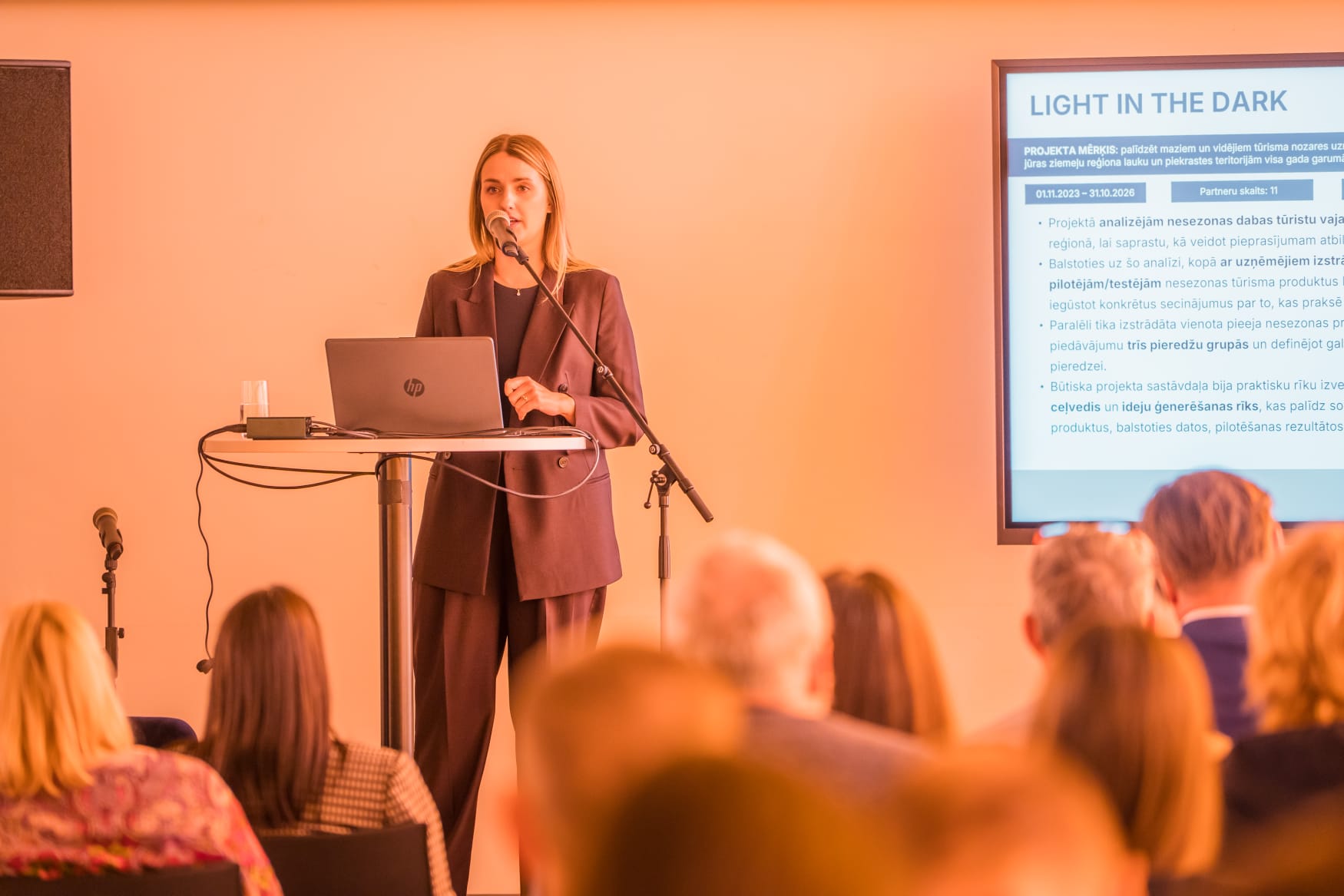 Anna Elizabete Upsava, in turn, provided a more in-depth insight into the “Light in the Dark” project, highlighting its practical approach to off-season tourism development. The project includes extensive international research into off-season traveller behaviour, revealing that demand is largely driven by a desire for tranquillity, authentic experiences, and meaningful time spent in nature.