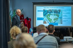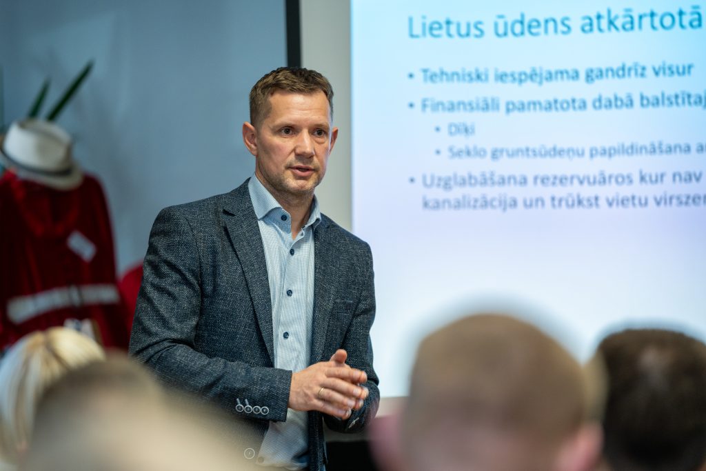 - A discussion event in Saldus on rainwater and wastewater recycling, with participation from Oskars Purmalis (Head of the Environmental Technology Laboratory, University of Latvia), Jurijs Kondratenko, Jānis Blūms (Head of the Water Management Sector at SIA Saldus Komunālserviss), and more than 50 participants from across Kurzeme;