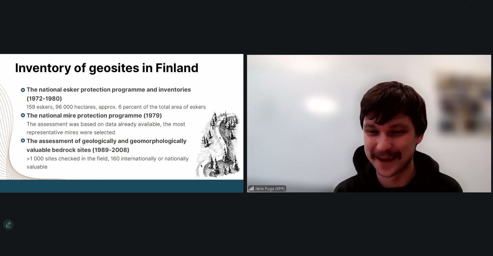 The online seminar provided a structured overview of Finnish approaches to geological heritage management and served as an informative basis for further activities within the Geosites project, strengthening cross-border cooperation between Latvian and Lithuanian partners.