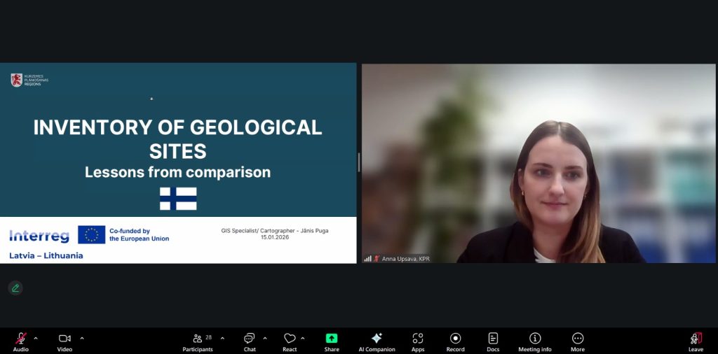On 15 January 2026, an online seminar titled “Geosites Experience Exchange Visit to Finland: Key Findings and Transferable Practices” was held, bringing together 29 participants from Latvia and Lithuania. The seminar was organised within the framework of the “Geosites” project (LL-00244) to share experience and key insights gained during the project partners’ experience exchange visit to Finland.