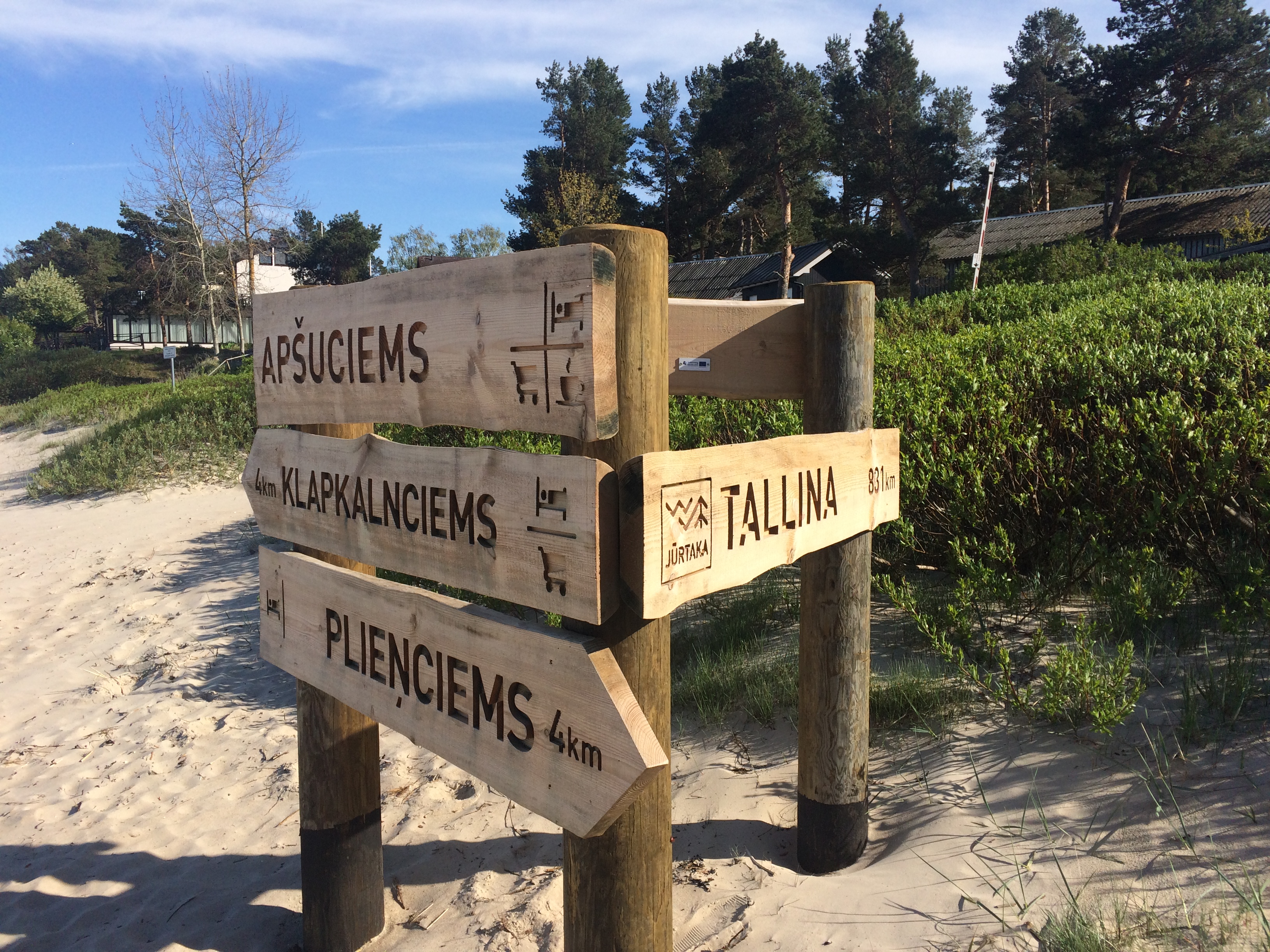 Projekta ietvaros Kurzemes reģiona un Engures novada piekrastes teritorijā kāpās tiek uzstādītas norādes zīmes un tūrisma informācijas stendi. Šīs zīmes ir veidotas uz trim atbalstiem, lielas un masīvas, lai tām neskādētu piekrastes vēji un vētras. Norādes zīmes tiek uzstādītas ar mērķi informēt ceļotāju par viņa atrašanās vietu, jo nereti neredzot aiz kāpas atrodošo apbūvi nav pat iespējams nojaust, ka turpat līdzās ir apdzīvota vieta. Tāpat uz šīm norādes zīmēm piktogrammu veidā tiek norādīts kādu pakalpojumu šajā apdzīvotajā vietā iespējams saņemt. Uz divām pārējām zīmēm norādīta nākošā un iepriekšējā apdzīvotā vieta un attālums līdz tām, kā arī informācija piktorgrammu veidā par pieejamajiem pakalpojumiem. Tas tiek darīts ar mērķi, lai ceļotājs varētu plānot savu maršrutu. Piemēram, vai apmeklēt pārtikas veikalu ciematā, kurā pašreiz atrodas, vai doties uz nākamo ciematu, jo arī tajā ir veikals un pašreiz ceļotājam tas nav nepieciešams, bet vakarā beidzot dienu vajadzēs apmeklēt, lai iegādātos visu nepieciešamo nākamās dienas posmam. Tāpat stenda labajā un kreisajā pusē tiek uzstādīta zīme ar norādi cik tālu ceļotājs atrodas no Nidas (Latvijas un Lietuvas robežas) un Tallinas, lai ceļotājs saprastu, cik tālu tas jau nogājis no sākumpunkta un cik tālu tam vēl jāiet līdz finišam, ja veic maršrutu visā tā garumā.