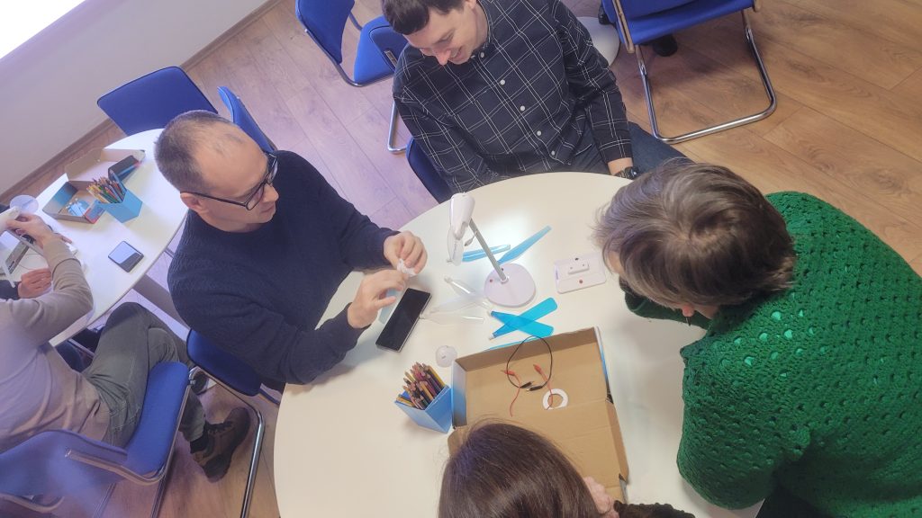 Tikšanās ar Taurages vietējās rīcības grupas pārstāvi Laimu Šveikauskieni sniedza iespēju uzzināt vairāk par ilgtspējīgas enerģijas ieviešanu un kopienu iniciatīvu atbalstu. Speciālistiem bija iespēja piedzīvot arī 3D virtuālās realitātes simulāciju, kas ļāva “uzkāpt” vēja turbīnā un iepazīt tās darbības principus.