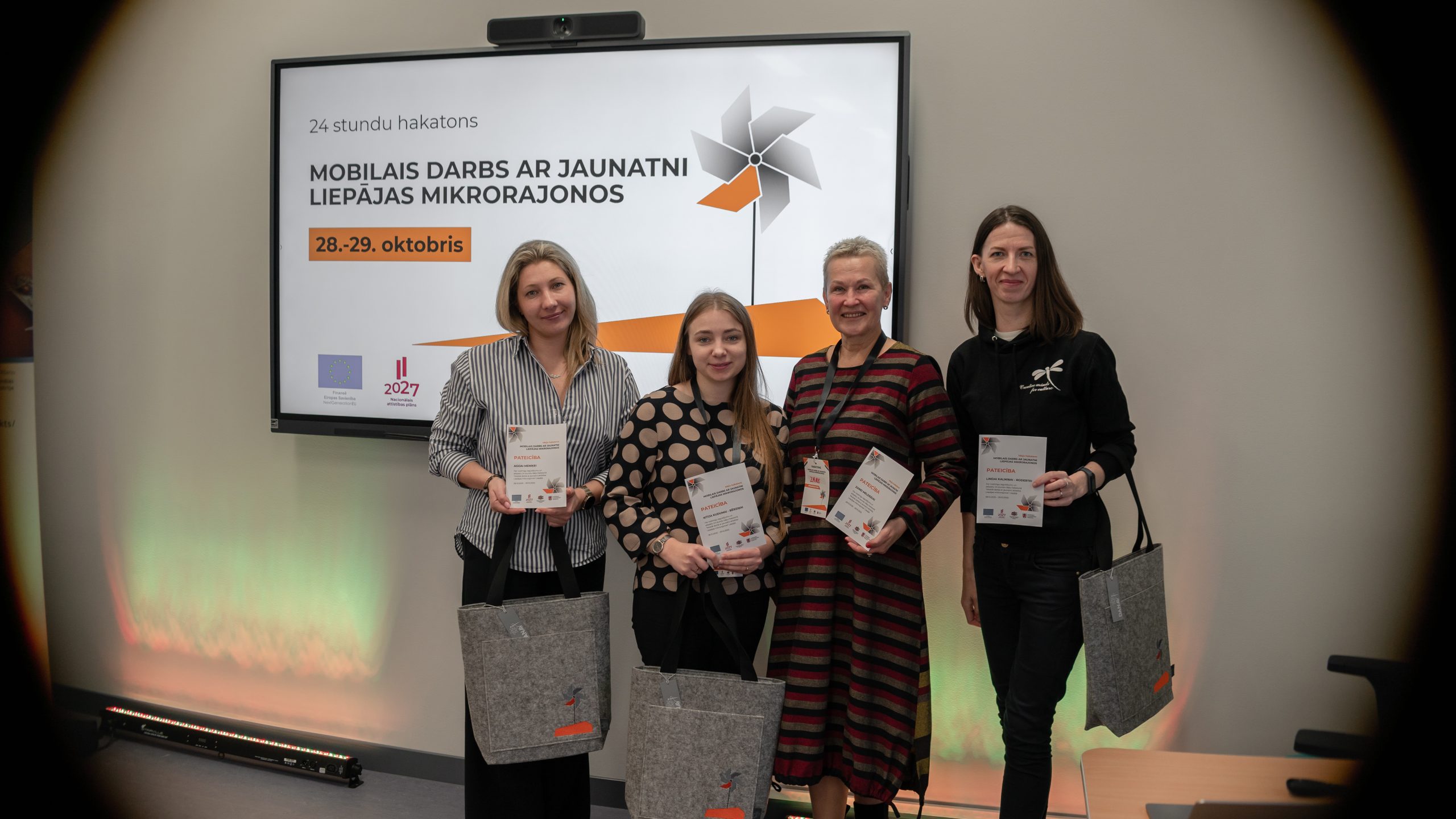Šī gada 28. un 29. oktobrī Liepājā tika aizvadīts hakatons jauniešiem. Tā ietvaros norisinājās arī ekspertu prezentācijas un mentoru darbs ar komandām, kas jauniešiem sniedza teorētisku un praktisku atbalstu ideju pilnveidē. Hakatonu atklāja prezentācija “Mobilais darbs ar jauniešiem”, ko vadīja Linda Kalniņa Roderte, neformālās izglītības kustības Creative Minds for Culture vadītāja. Dienas turpinājumā sekoja lekcija “Radošas un inovatīvas metodes darbā ar jauniešiem”, kuru vadīja Elīna Briljonoka, You+ trenere, koučs un jauniešu mentore. Abu ekspertu uzstāšanās rosinoši rāva diskusijas un palīdzēja komandām paplašināt domāšanu par jauniešu iesaistes iespējām mikrorajonos.
