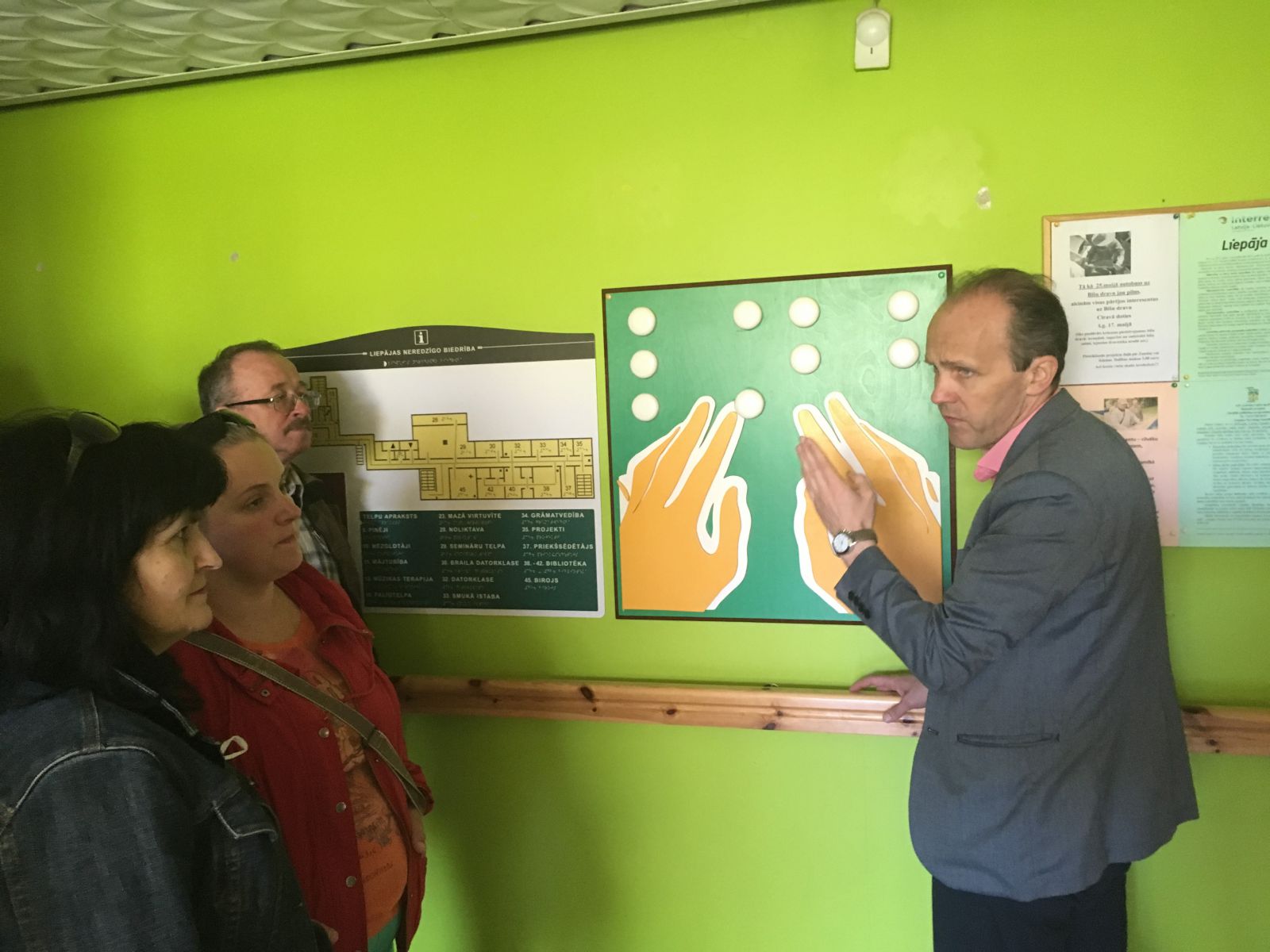 Pagājušajā nedēļā 25 Lietuvas pierobežas reģiona pašvaldību, tūrisma informācijas centru un nacionālo un reģionālo parku pārstāvji piedalījās divu dienu pieredzes apmaiņas vizītē Kurzemē. Pirmajā dienā dalībnieki apmeklēja Liepājas Neredzīgo biedrību, kuras priekšsēdētājs Māris Ceirulis iepazīstināja dalībniekus ar biedrības darbību, sniegtajiem pakalpojumiem un līdz šim paveikto pilsētas pieejamības veicināšanai, īpašu uzmanību veltot pilsētvides pielāgošanai neredzīgajiem. Māra Ceiruļa vadībā dalībnieki apsekoja pilsētu, diskutējot par pilsētā veiktajiem pielāgojumiem – uzstādītajām ceļa seguma vadlīnijām, informācijas stendiem braila rakstā, taktilajām kartēm, luksoforiem, marķējumu, paveikto attiecībā uz sabiedriskā transporta, izglītības iestāžu, atpūtas vietu u.c. pielāgojumiem. Dalībnieki iepazinās arī ar Liepājas Neredzīgo biedrības izveidoto Dvēseles veldzes dārzu Ziemupē, tās darbību, finansējuma avotiem, piedāvātajām rehabilitācijas iespējām un ierīkotajām trīs dabas takām (Baso pēdu taka, Sajūtu parks, Labirints), kas speciāli veidotas neredzīgajiem. Pāvilostas Tūrisma informācijas centra pārstāves Antas Lībietes pavadībā dalībnieki apmeklēja Pāvilostas pludmales laipu, kas cilvēkiem ar īpašām vajadzībām pieejama ar asistenta palīdzību.