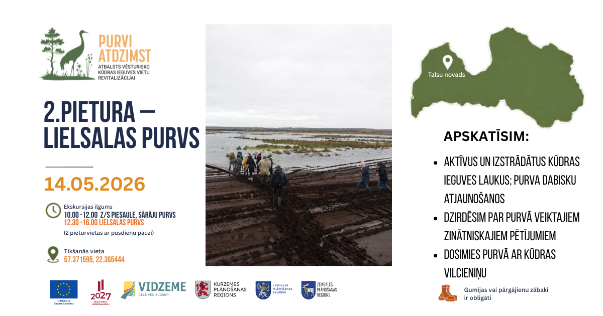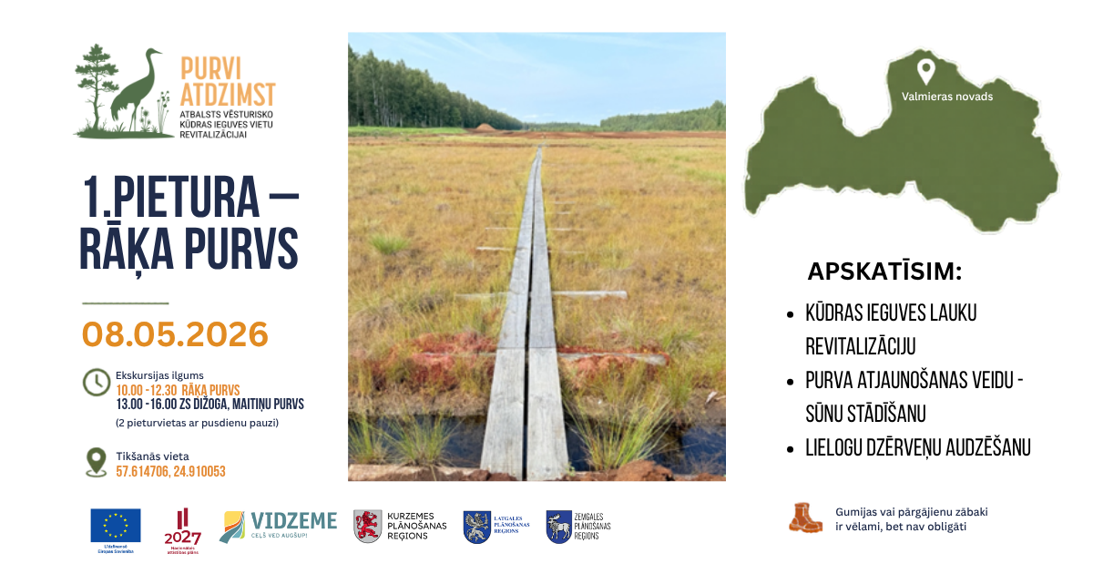 Projekts “Atbalsts vēsturisko kūdras ieguves vietu revitalizācijai” tiek īstenots Eiropas Savienības kohēzijas politikas programmas 2021.-2027. gadam 6.1.1. specifiskā atbalsta mērķa “Pārejas uz klimatneitralitāti radīto ekonomisko, sociālo un vides seku mazināšana visvairāk skartajos reģionos” 6.1.1.1. pasākuma “Atteikšanās no kūdras izmantošanas enerģētikā” ietvaros.