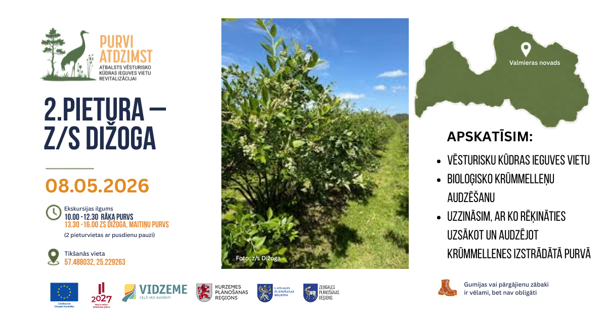 Semināru cikls sāksies 8. maijā Vidzemē ar Rāķa purva apmeklējumu, kur tiks demonstrēta sūnu stādīšana un lielogu dzērveņu audzēšana, kā arī bioloģiskās zemnieku saimniecības “Dižoga” pieredze krūmmelleņu un stādu audzēšanā vēsturiskā kūdras ieguves vietā Maitiņu purvā. 14. maijā Kurzemē dalībnieki apmeklēs zemnieku saimniecību “Piesaule”, kas ir viena no pieredzes bagātākajām lielogu dzērveņu audzētājām Latvijā, un Lielsalas purvu, kur būs iespēja iepazīt gan purva dabiskās atjaunošanās procesu, gan izstrādāto platību sagatavošanu meža veidošanai. 19. maijā Latgalē paredzēta vizīte Strūžānu purvā, kur tiks pārrunāti revitalizācijas izaicinājumi teritorijās ar sadrumstalotām īpašumtiesībām, un Žogotu purvā, kas rāda piemēru, kā bijušajā kūdras ieguves teritorijā dabiski izveidojusies bērzu audze. Savukārt 28. maijā Zemgalē noslēdzošais seminārs notiks Kaigu purvā, kur vienuviet redzama daudzveidīga pieeja – dabiskā atjaunošanās, sfagnu, niedru, kalmju, lielogu dzērveņu un krūmmelleņu audzēšana, dažādu koku sugu stādījumi, CO₂ emisiju monitorings, vēja parks un kūdras amfiteātris “Saulgrieži”. Semināra ietvaros paredzēts apmeklēt arī SIA “Arosa-R”, kas specializējas lielogu krūmmelleņu audzēšanā un stādu ražošanā un rūpīgi izvēlas ogu šķirnes.