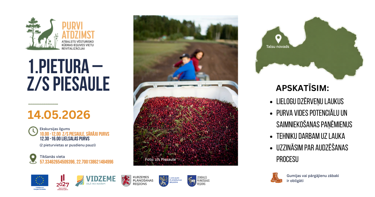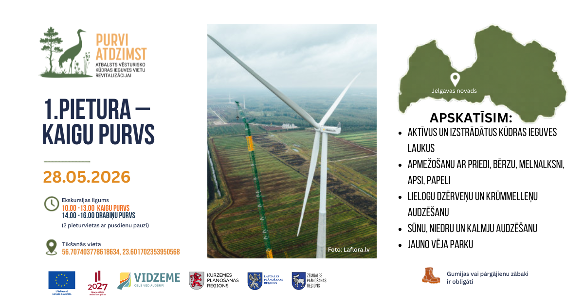 Šī gada maijā, no 8. līdz 28. maijam, visā Latvijā, tajā skaitā arī Kurzemē, norisināsies četru izbraukuma semināru cikls, kura ietvaros vēsturisko kūdras ieguves vietu īpašniekiem un citiem interesentiem būs iespēja klātienē iepazīties ar dažādiem teritoriju revitalizācijas un apsaimniekošanas risinājumiem.
