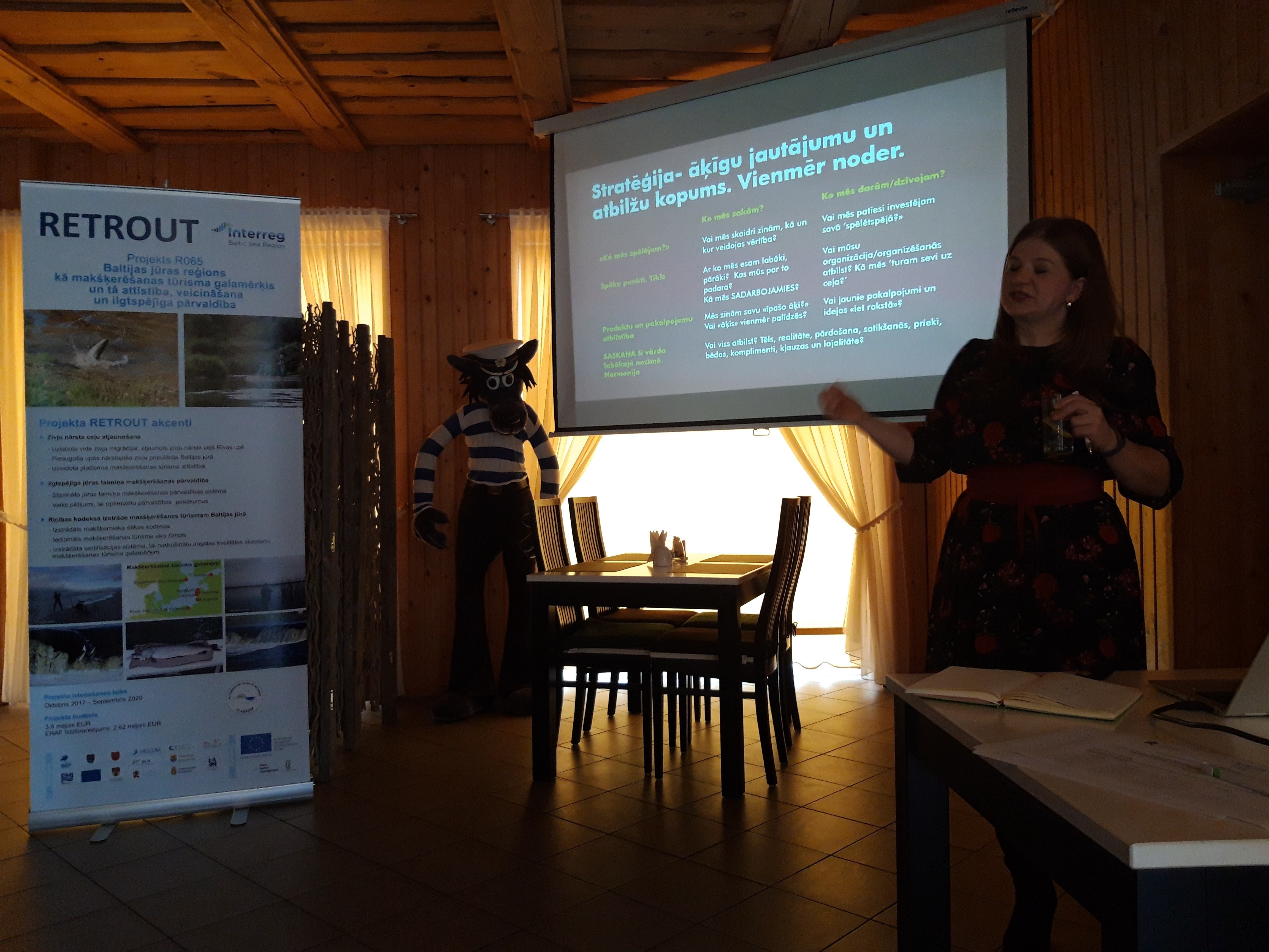 Kurzemes Plānošanas reģions projekta “Baltijas jūras reģions kā makšķerēšanas tūrisma galamērķis un tā attīstība, veicināšana un ilgtspējīga pārvaldība” (RETROUT) ietvaros rīkoja apmācību semināru ciklu – sešus seminārus – par Kurzemes kā makšķerēšanas tūrisma galamērķa veidošanu. Semināru ciklu vadīja Latvijā pazīstamais tūrisma galamērķu un klasteru veidošanas eksperts Andris Klepers, un tajos tika sniegta informācija par to, kā veidot makšķerēšanas tūrisma piedāvājumus, kāda ir potenciālā makšķerēšanas tūrisma klientūra Latvijā un ārvalstīs, kādi ir esošie zivju un tūrisma resursi šajā jomā, kā arī runājām par sadarbības modeļiem starp dažādu pakalpojumu sniedzējiem, lai izveidotu vienotu un kvalitatīvu makšķerēšanas tūrisma produktu. Uzņēmējiem dalība semināros deva iespēju attīstīt papildinošu produkta piedāvājumu, veidot to stratēģiskā partnerībā ar citiem, bet nākotnē – stiprināt savu pārdošanas stratēģiju kopumā un gūt labumu no kopējām tirgvedības darbībām.
