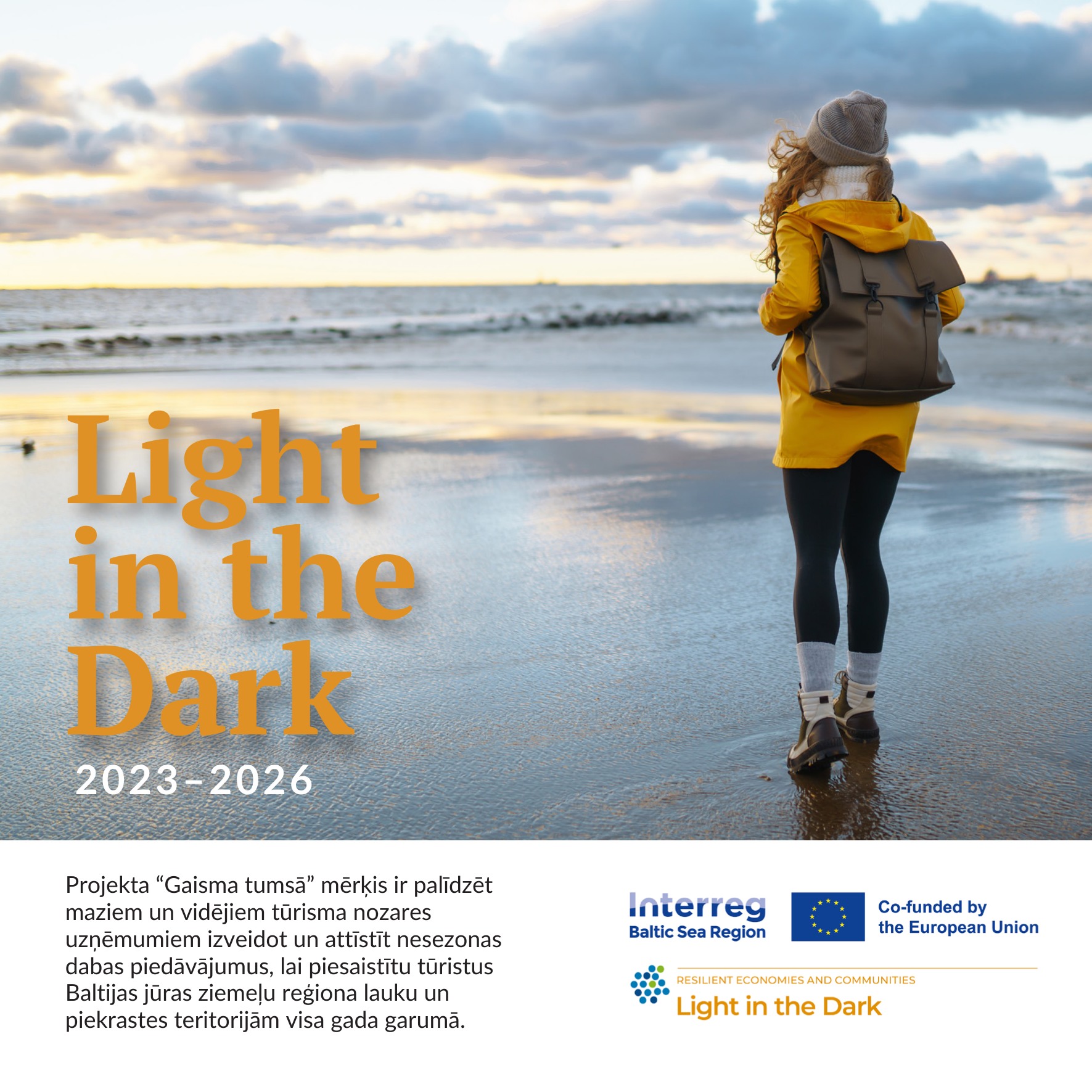 Seminārs tiek rīkots Interreg Baltijas jūras reģiona programmas projektā “Gaisma Tumsā – palielināt noturību lauku un piekrastes tūrismā Baltijas jūras ziemeļu reģionā, attīstot starpsezonas tūrisma pieredzi” (Nr. #C034). Projekta mērķis ir palīdzēt maziem un vidējiem tūrisma nozares uzņēmumiem izveidot un attīstīt nesezonas dabas piedāvājumus, lai piesaistītu tūristus Baltijas jūras ziemeļu reģiona lauku un piekrastes teritorijām visa gada garumā. “Gaisma tumsā” projekts tiek īstenots vairākās Baltijas jūras reģiona teritorijās: Klaipēdas reģionā Lietuvā, Kurzemes reģionā Latvijā, Ziemeļigaunijas un Rietumigaunijas piekrastes teritorijās un salās Igaunijā, Somijas austrumu piekrastē, Turku arhipelāgā un Ālandu salās Somijā, kā arī Stokholmas arhipelāgā Zviedrijā.