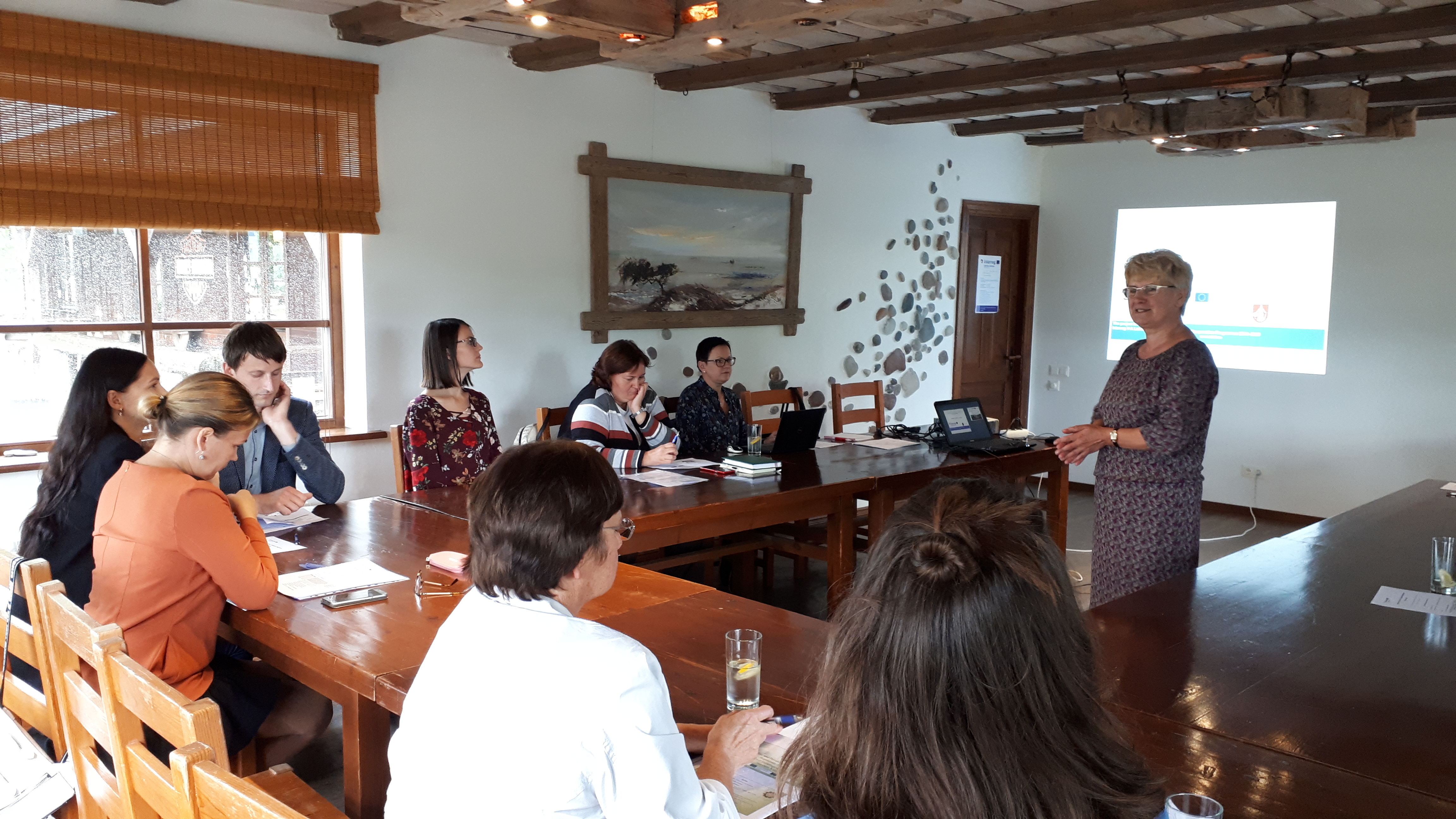 11.septembrī par projekta ieviešanas gaitu un turpmāk paveicamo stāstīja projekta vadītāja Sarmīte Ozoliņa, savukārt par paveikto savās pašvaldībās informēja projekta partneri – Kurzemes reģiona pašvaldību pārstāvji no Kuldīgas, Skrundas, Saldus un Ventspils novadiem un partneri no Lietuvas – Klaipēdas un Telšu pašvaldībām, kā arī Kauņas pilsētas administrācijas un Kauņas reģionālās attīstības aģentūras.