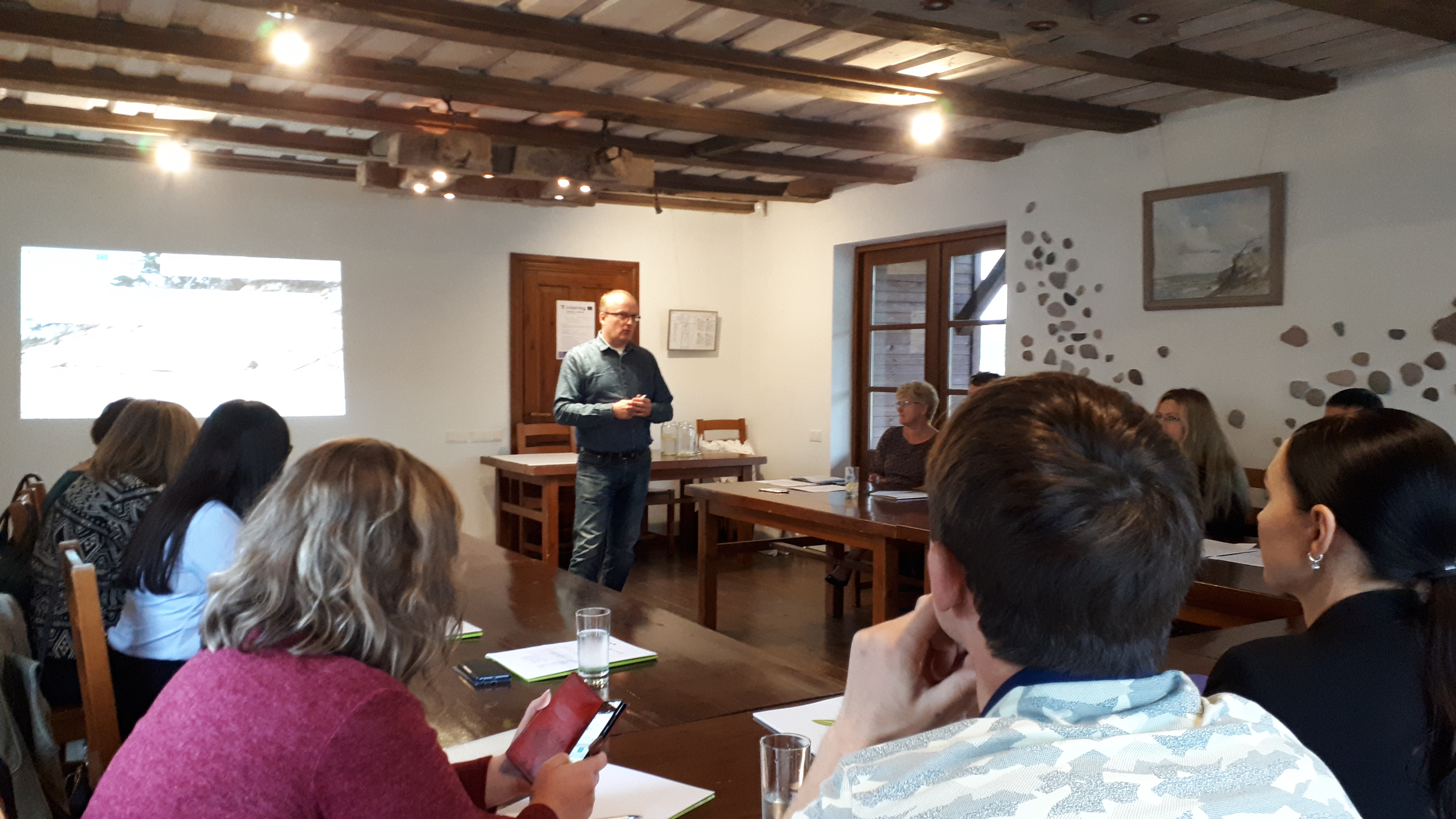 Pirmās dienas noslēgumā projekta vadības grupas dalībnieki iepazinās ar Ziemeļkurzemes biznesa asociācijas pārstāves stāstījumu par projektu īstenošanu degradētu vai novārtā pamestu objektu atdzīvināšanai Ziemeļkurzemē, izmantojot LEADER finansējumu, kā arī apskatīja raksturīgas teritorijas un veiksmīgi sakārtotus vai sakārtošanas procesā esošus objektus Jūrkalnes pagastā.