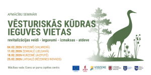 2026. gada februārī četros Latvijas plānošanas reģionos norisināsies apmācību semināru cikls “Vēsturiskās kūdras ieguves vietas: