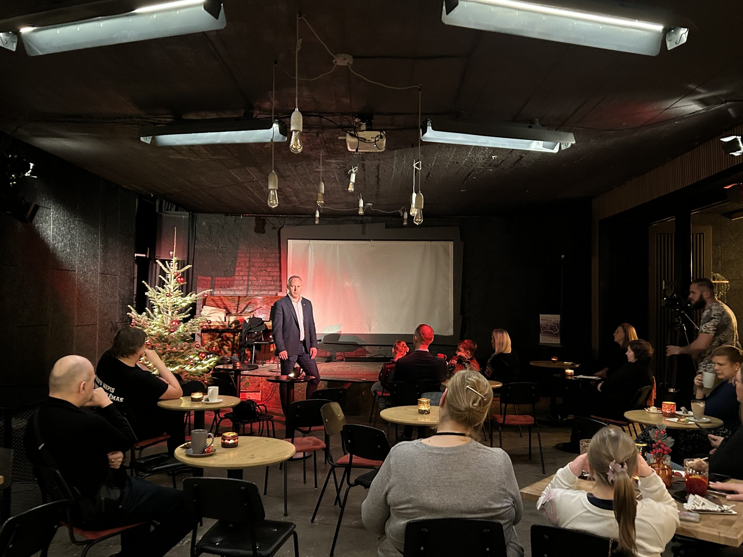 Pasākumu atklāja un vadīja Gatis Ginters, kurš arī ir remigrants un pēc vairāku gadu prombūtnes Norvēģijā atgriezies ar ģimeni Liepājā. Pasākuma pirmajā daļā dalībniekus uzrunāja Kurzemes plānošanas reģiona remigrācijas koordinatore Agnese Berģe, iepazīstinot ar aktuālāko informāciju par Liepāju un Kurzemes reģionu kopumā. Savukārt Liepājas valstspilsētas pašvaldības Attīstības pārvaldes Ekonomikas un stratēģiskās plānošanas nodaļas vadītājs Arnis Vītols informēja par remigrantu uzņēmējdarbības projektu līdzfinansēšanas konkursu, atbalstu saņēmušajiem projektiem un citām aktuālajām iespējām. A. Vītols uzsvēra, ka konkurss notiks arī nākamajā gadā, un aicināja ikvienu interesentu tajā piedalīties.