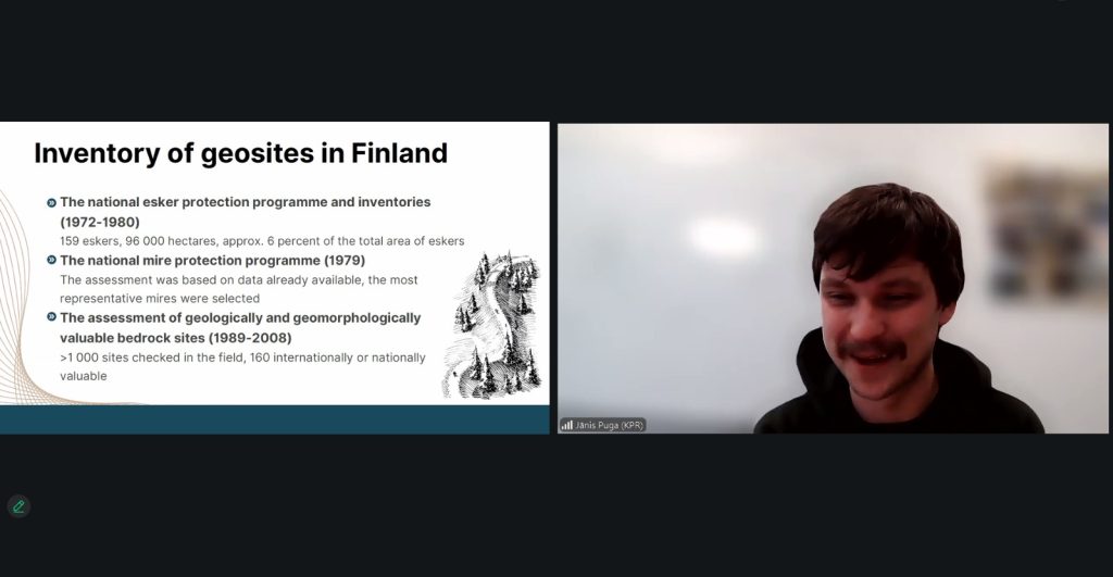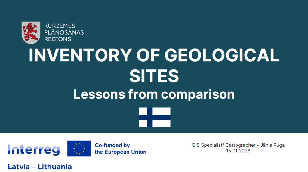 Tiešsaistes seminārs sniedza strukturētu pārskatu par Somijas pieejām ģeoloģiskā mantojuma pārvaldībā un kalpoja kā informatīvs pamats turpmākajam darbam projekta “Geosites” ietvaros, stiprinot pārrobežu sadarbību starp Latvijas un Lietuvas partneriem.