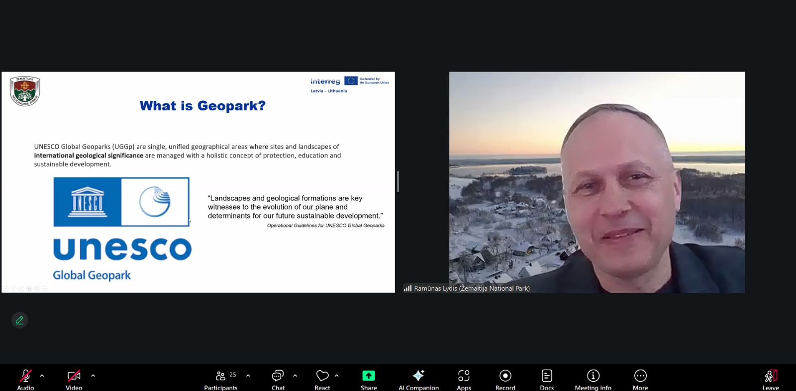 Noslēgumā Ramūnas Lydis, Žemaitijas Nacionālā parka direktors, iepazīstināja ar UNESCO Globālo ģeoparku koncepciju, skaidrojot tās pamatprincipus, kritērijus un potenciālos ieguvumus vietējai attīstībai. Tika aplūkota arī Somijas Salpausselkä ģeoparka pieredze kā piemērs ģeoloģiskā mantojuma izmantošanai izglītībā, tūrismā un reģionālajā attīstībā.