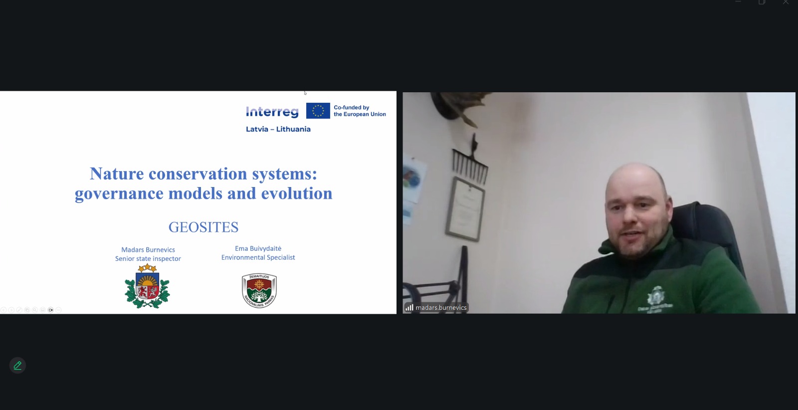Par dabas aizsardzības pārvaldības sistēmām un to attīstību Somijā, Latvijā un Lietuvā stāstīja Madars Burnevics, Latvijas Dabas aizsardzības pārvaldes Kurzemes reģionālās administrācijas vecākais valsts vides inspektors. Prezentācijā tika aplūkoti institucionālie modeļi, aizsargājamo teritoriju kategorijas un pārvaldības pieejas, uzsverot atšķirības un līdzības Baltijas jūras reģiona valstīs.