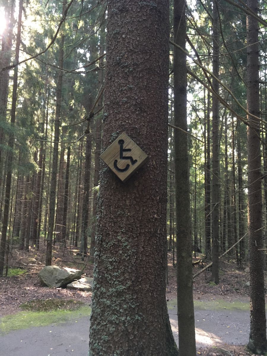 Nuuksio Nacionālā parka apmeklējuma laikā dalībniekiem bija iespēja apmeklēt Somijas Dabas centru “Haltia”, kura pārstāvji sniedza informāciju par parku, dabas centru, dabas tūrisma jautājumiem, kā arī paša centra un parka dabas taku un objektu pieejamību. Centrs “Haltia” uzbūvēts 2013.gadā un 2015.gadā saņēmis Eiropas gada muzeju nomināciju kā ilgtspējīgākā ēka. Pats centrs pārsteidza dalībniekus ar tā mūsdienīgo veidolu, ilgtspējīgo koncepciju, mūsdienīgajām ekspozīcijām, kas saistošā un atraktīvā veidā stāsta par somu dabas bagātībām un vērtībām. Pēc iepazīšanās ar centru un tā ekspozīcijām, dalībnieki devās centra tuvumā esošās 2 km garās dabas takas apskatē, kas pielāgota cilvēkiem ar īpašām vajadzībām, kur dalībniekiem pievienojās arī parka reindžere – meitene ratiņkrēslā. Arī vienam no dalībniekiem bija iespēja mērot dabas taku dabas centra piedāvātajā ratiņkrēslā, lai pēc dabas takas apskates kopā pārrunātu tās piemērotību cilvēkiem ar īpašām vajadzībām, kā arī vispārējos taku pielāgošanas izaicinājumus un vajadzības. Dabas takas apskati apgrūtināja negaiss, un pierādījās apstāklis, ka grūtākos maršrutos cilvēkiem ratiņkrēslos lieti noder pavadonis – vai nu kāds no pašu cilvēkiem, vai parka piedāvāts palīgs. Tāpat arī dalībniekiem bija iespēja pārliecināties, ka pat 1 cm slīpuma atšķirība var būtiski ietekmēt takas izbraukšanas iespējas, tāpat ir svarīgs arī takas segums un uzturēšanas darbi (zāles izpļaušana takas malās, lapu novākšana utml.). Šajā dabas parkā dalībnieki apmeklēja arī apmeklētāju informācijas namiņu parka teritorijā, kurā papildus informācijai par parkā sastopamajiem dzīvniekiem un augiem, bija izvietota arī informācija Braila rakstā, kā arī nodrošināta pieeja skatu laukumam un atpūtas un ugunskura vietām ezera krastā cilvēkiem ar kustību traucējumiem.