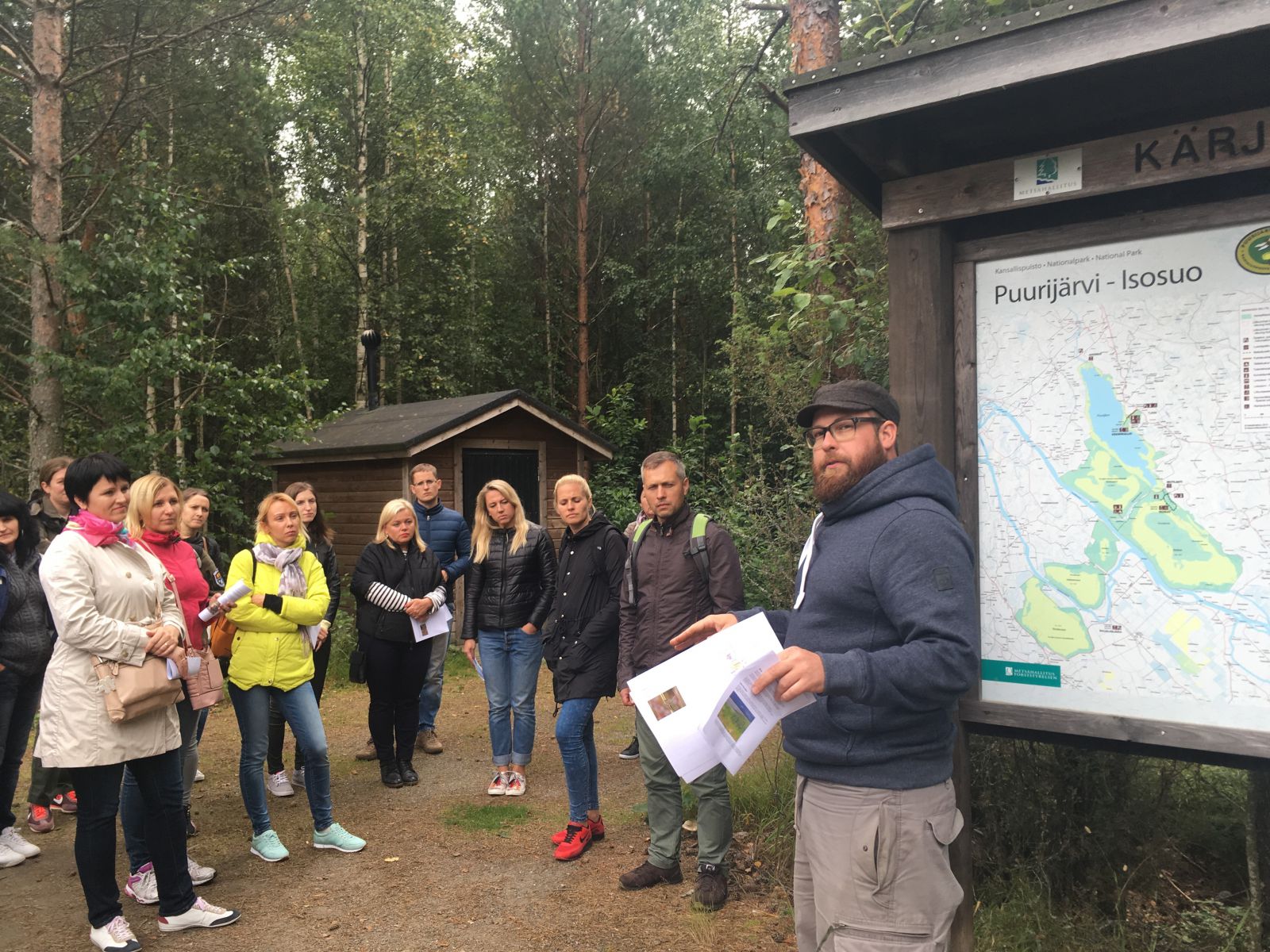 Kurjenrahka Nacionālajā parkā dalībnieki apskatīja speciāli cilvēkiem ar īpašām vajadzībām izveidoto dabas laipu, kas ved uz Savojärvi ezeru, pieejamo atpūtas vietu un ekspozīciju. Laipas sākumā bija izvietotas arī labierīcību telpas, kas pieejamas cilvēkiem ar īpašām vajadzībām. Laipa noslēdzās ar piekļuves platformu ezeram virs ūdens, kas bija labiekārtota tā, lai sniegtu iespēju arī cilvēkiem ar īpašām vajadzībām piekļūt ezeram (peldēties) un laivai (iekāpt/izkāpt, vizināties pa ezeru). Teijo Nacionālajā parkā dalībnieki apmeklēja 600 m garo dabas taku ar noslēgumā labiekārtotu atpūtas vietu pie ezera ar makšķerēšanas iespējām, kas pieejama cilvēkiem ar īpašām vajadzībām, kur apmeklētāji ezerā nomakšķerēto lomu var arī uz vietas iztīrīt un pagatavot.Dalībnieki atzina, ka vizīte sniedza ārkārtīgi vērtīgu pieredzi, jo tikai pašiem izmēģinot atsevišķu taku posmu ratiņkrēslā un diskutējot ar cilvēkiem ar īpašām vajadzībām par viņu vajadzībām un iespējām, ir iespējams saprast, kā pareizi veidot dabas objektu pieejamību, jo pat niecīgs 1cm takas slīpums var būtiski apgrūtināt takas izbraukšanas iespējas. Tajā pašā laikā dalībnieki atzīmēja, ka Somijas dabas objektu apsaimniekošanas prakse parāda, ka pieejamības nodrošināšanai ne vienmēr nepieciešams investēt milzīgus resursus. Rezultātu ir iespējams panākt arī ar salīdzinoši nelieliem ieguldījumiem, kas, savukārt, ļauj palielināt pieejamību, kaut vai minimālā līmenī, taču pēc iespējas vairāk dabas objektiem (piem., sākotnēji nodrošinot iespēju piekļūt dabas objektiem cilvēkiem ar pavadoņiem un tad pakāpeniski laika gaitā uzlabojot piedāvāto iespēju klāstu). Lai gan vairumam no Somijas dabas takām ir uzstādīti apmeklētāju skaitītāji, tomēr, kā atzīmēja Somijas kolēģi, tie veic tikai kopējo apmeklētāju skaita uzskaiti, neizdalot cilvēku ar īpašām vajadzībām skaitu, kas būtu būtiski konkrēto dabas objektu pieejamības un reģiona sociālekonomisko attīstības pasākumu plānošanas aspektā.Pieredzes apmaiņas vizīte tika organizēta ar Interreg Latvijas-Lietuvas sadarbības programmas atbalstu projekta Nr. LLI-010 “Dabas tūrisms visiem” (UniGreen) ietvaros.