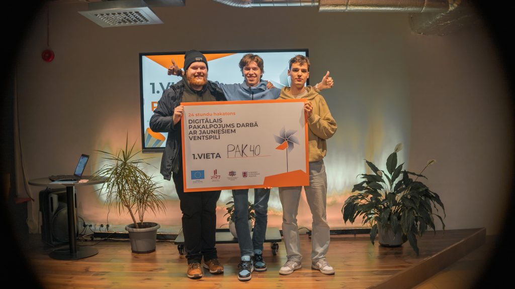 2025.gada 30. – 31. oktobrī Ventspils Augstskolā aizvadīts 24 stundu hakatons “Digitālais pakalpojums darbā ar jauniešiem Ventspilī”, kura mērķis bija rast digitālus risinājumus informācijas pieejamības uzlabošanai starp jauniešiem un pašvaldību. Pasākumā piedalījās jauniešu komandas, kas 24 stundu laikā no idejas nonāca līdz prototipam — lietotņu un platformu konceptiem, kas apvienotu aktuālos notikumus, iespējas, pakalpojumus un iesaistes mehānismus vienuviet.